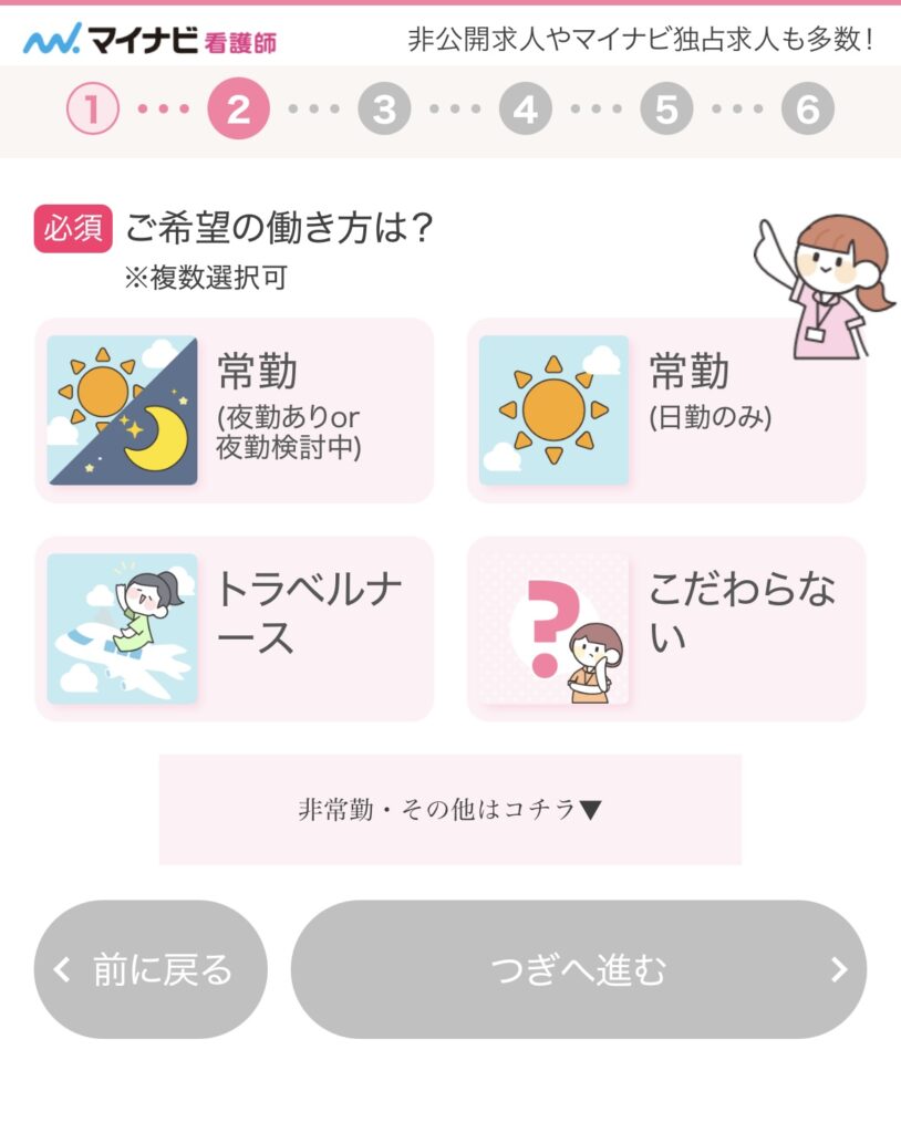 続いて希望する働き方を選択していきます